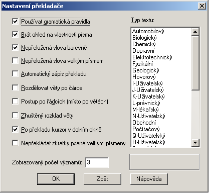 Nastavení v PC Translatoru